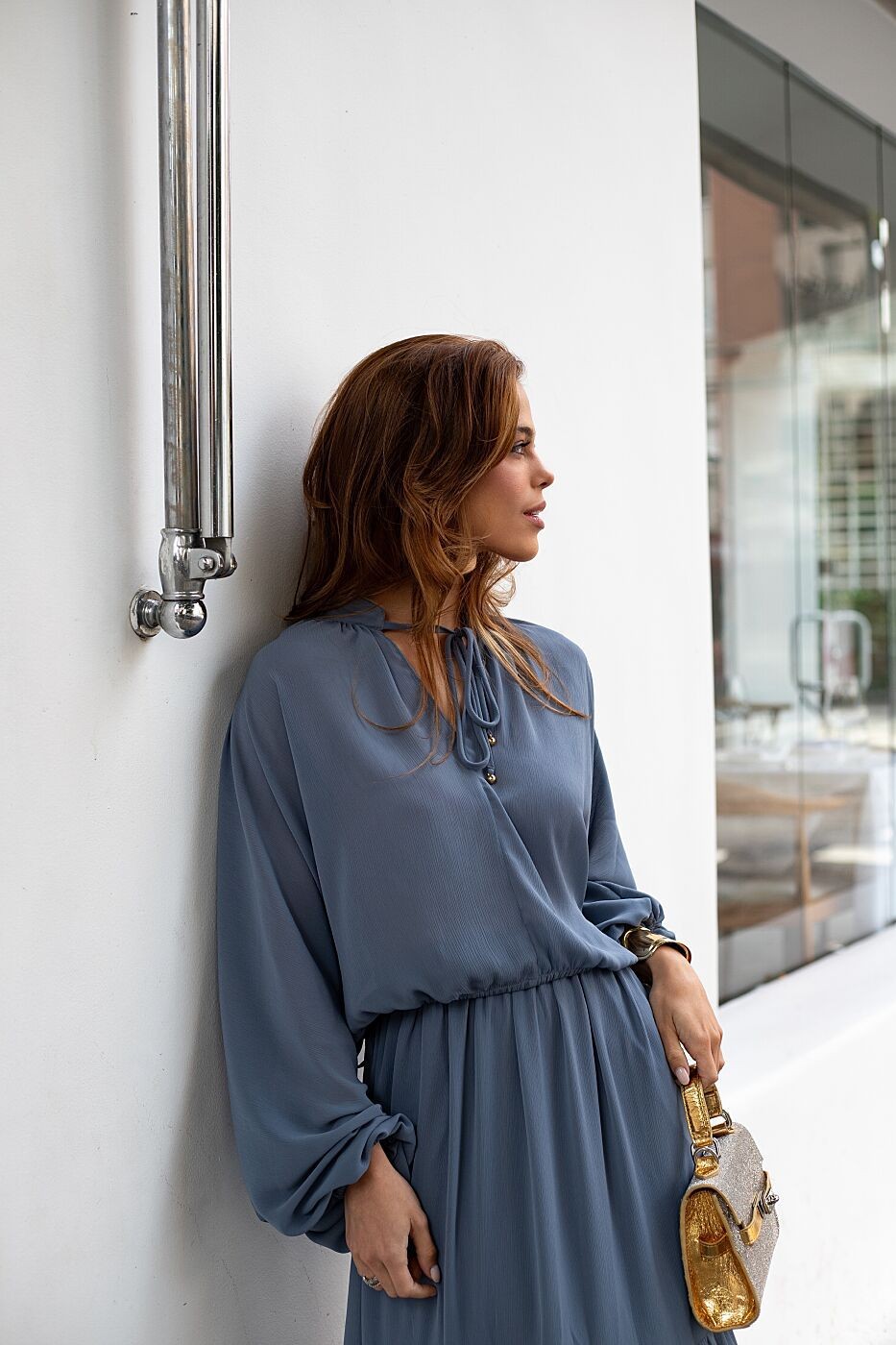 BLUSA FLUIDA COM DECOTE AMARRAÇÃO E MANGA LONGA