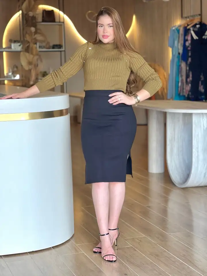 O TAMANHO ÚNICO VESTE DO P AO G. O TECIDO TRICOT CONTÉM BASTANTE ELASTICIDADE.