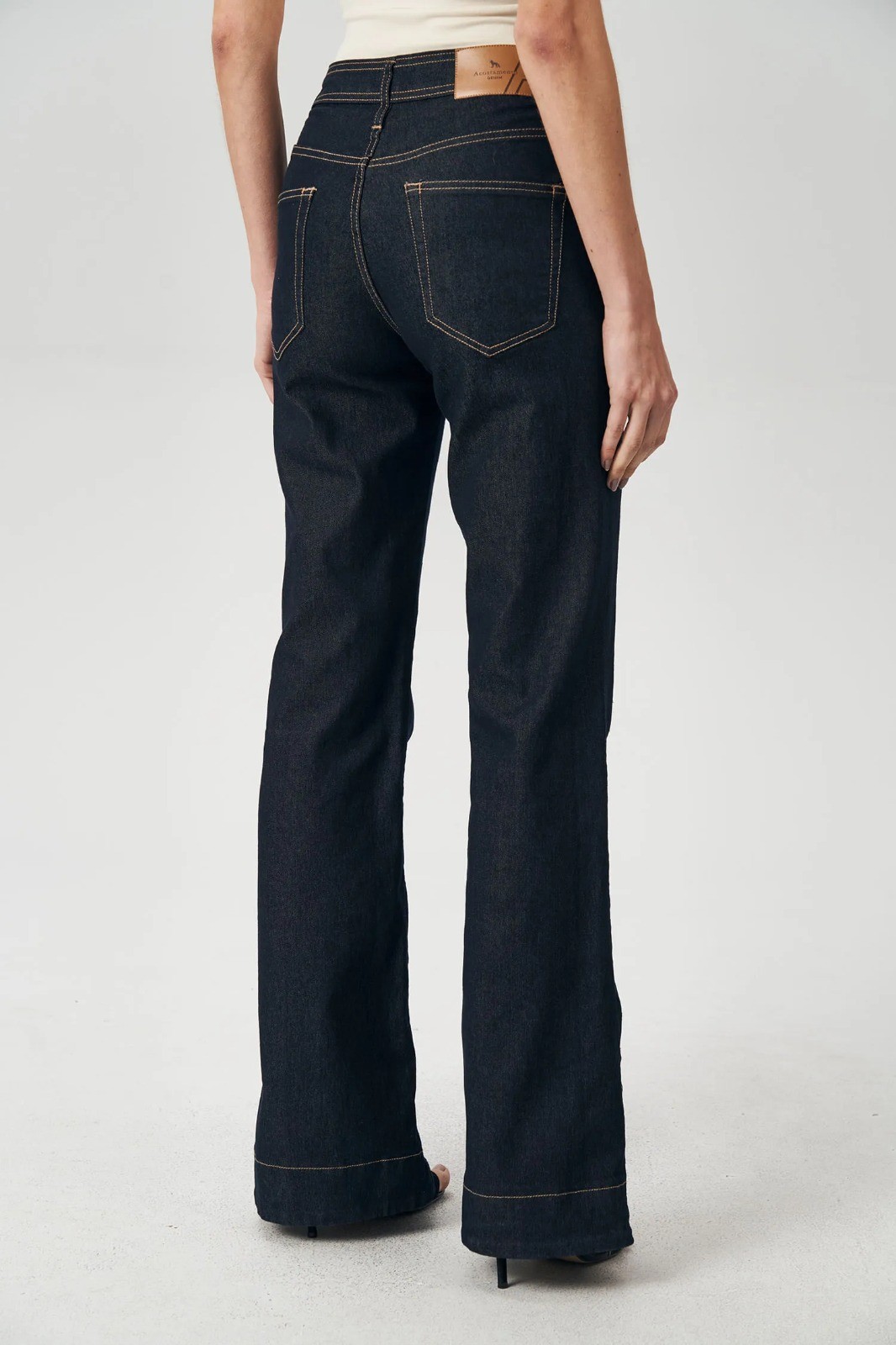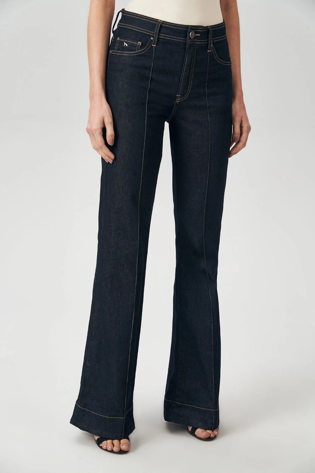 CALÇA JEANS FLARE COM MARCAÇÃO FEMININA ACOSTAMENTO