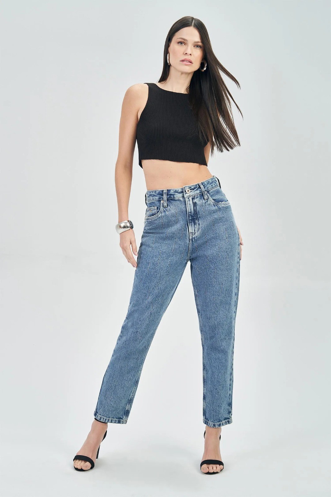 Confeccionada em jeans de alta qualidade, essa calça apresenta modelagem mom fit, com caimento reto e levemente solto, garantindo conforto e estilo. Possui cintura alta, que valoriza a silhueta e proporciona um ajuste perfeito ao corpo.