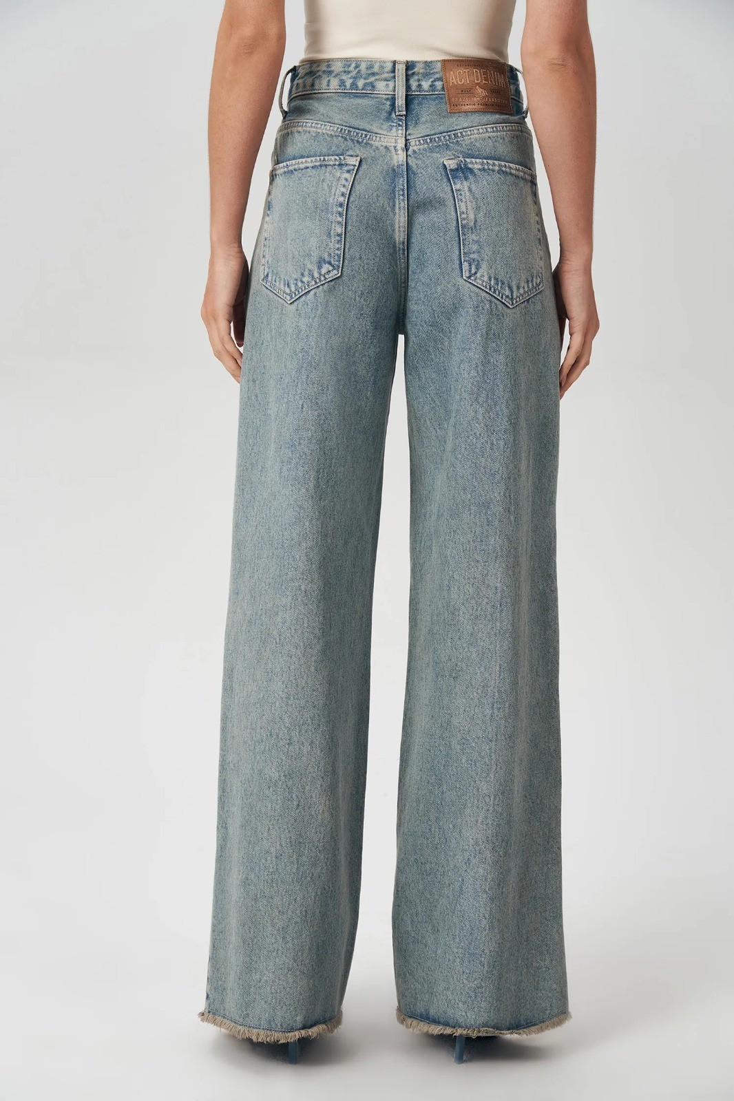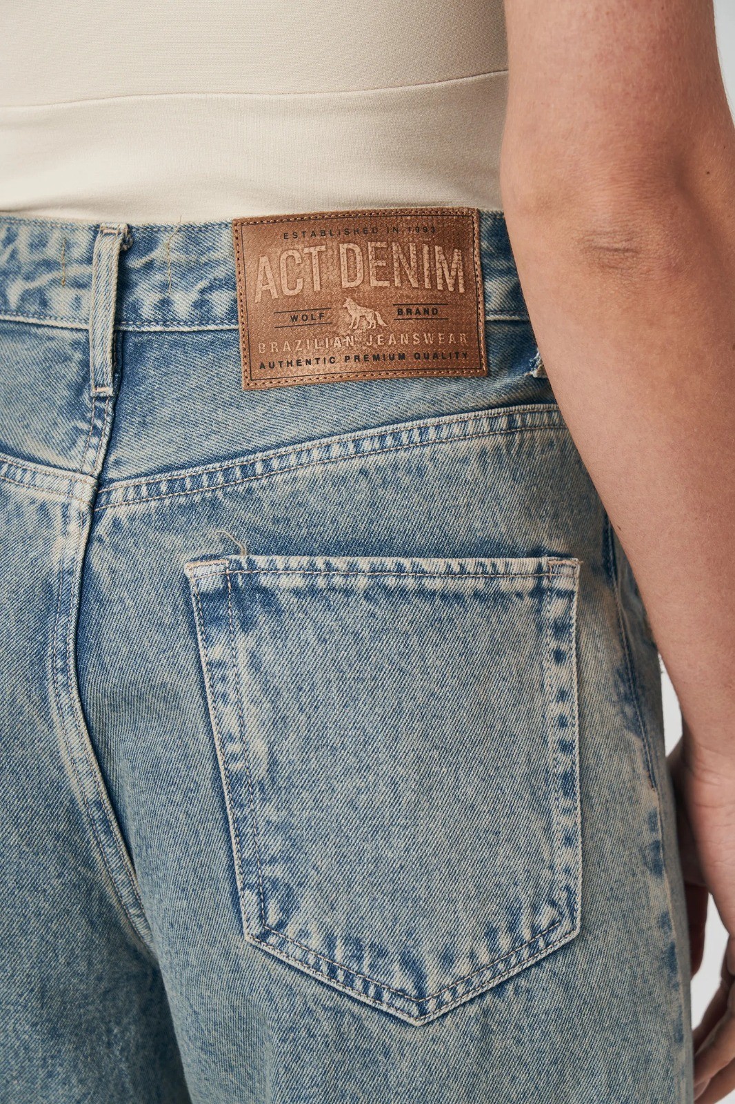 Confeccionada em jeans de lavagem clara, apresenta efeito levemente estonado que traz um toque urbano e atual à peça. Os detalhes destroyed sutis acrescentam personalidade sem perder a elegância, enquanto a barra desfiada reforça o estilo casual e fashionista.