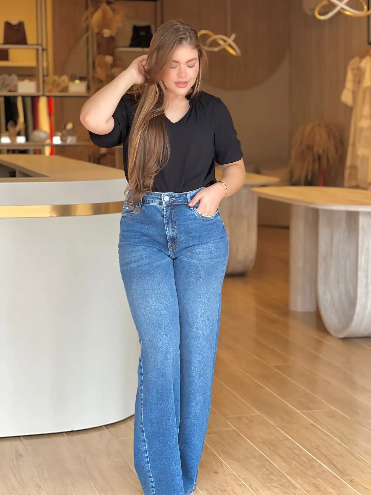 CALÇA JEANS WIDE LEG ACOSTAMENTO