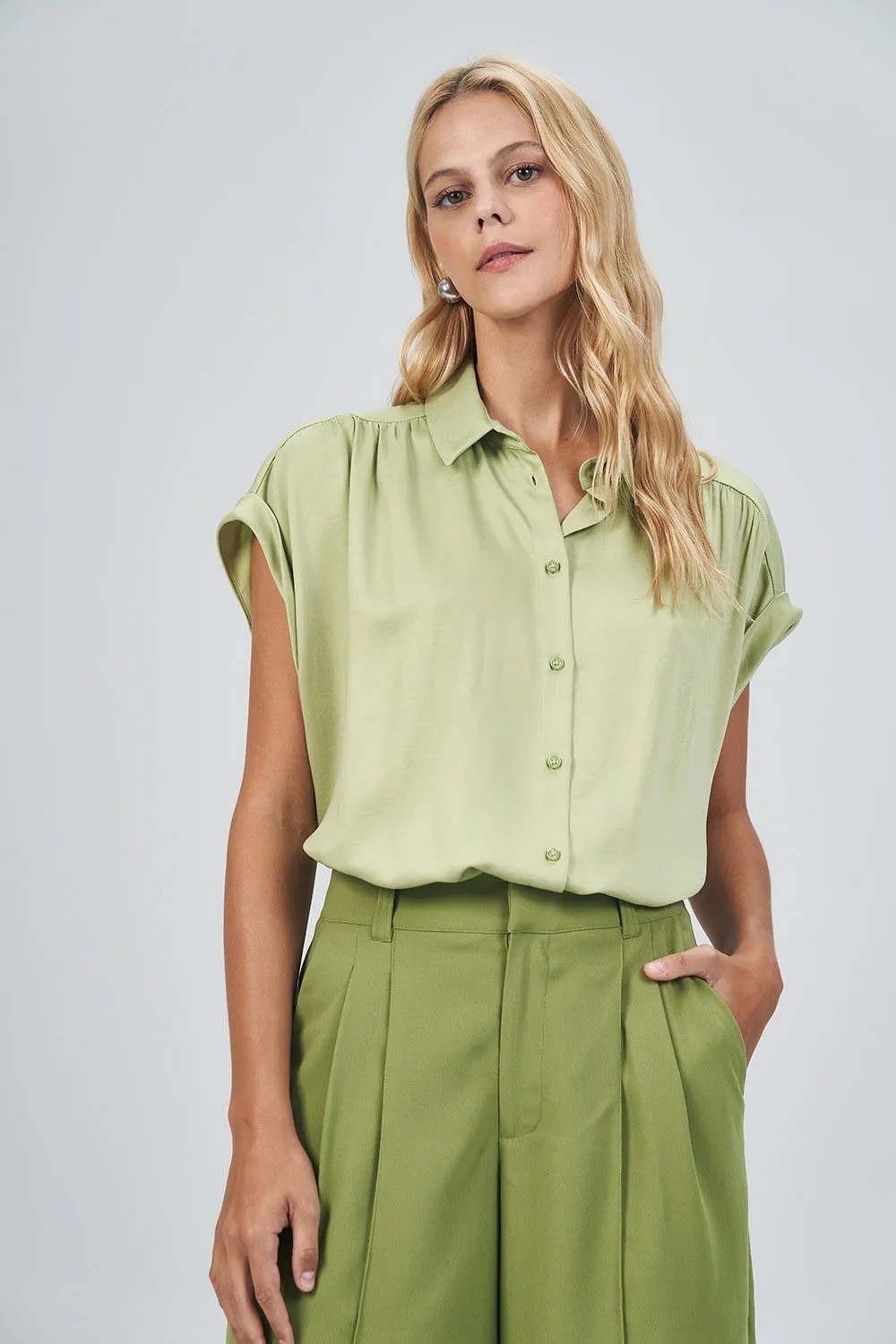 Perfeita para looks de trabalho, produções urbanas ou combinações monocromáticas sofisticadas, a camisa é um item essencial no guarda-roupa feminino.