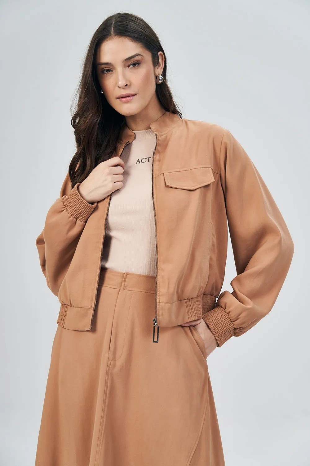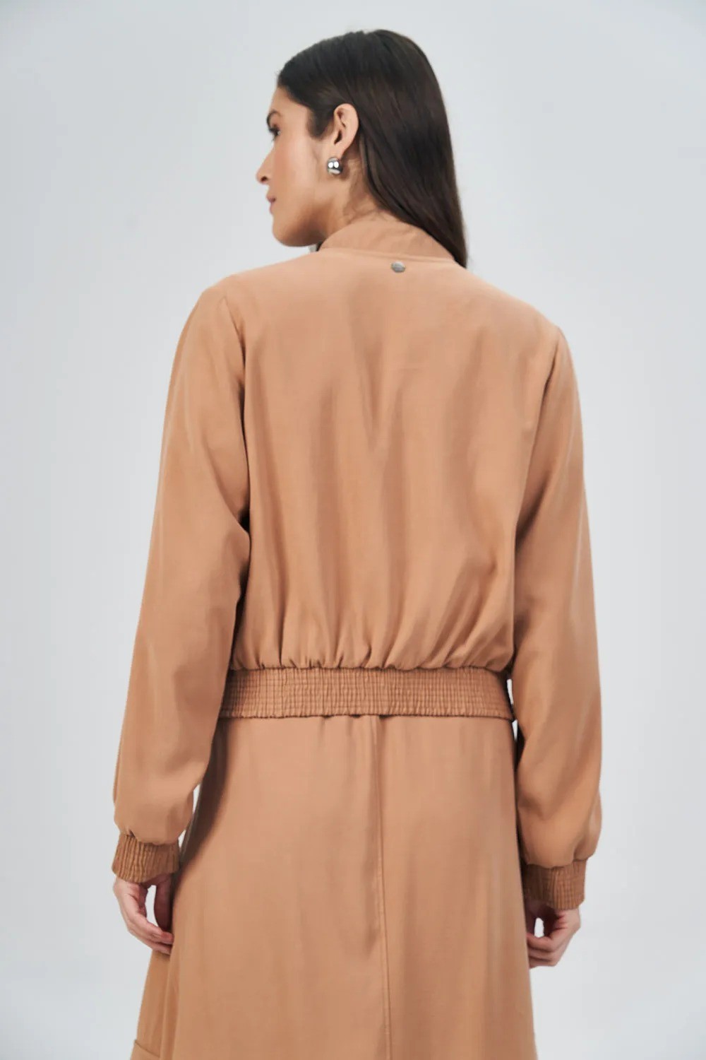 Jaqueta feminina confeccionada em tecido leve e de toque macio, ideal para composições modernas e versáteis. Possui modelagem reta levemente ajustada, garantindo conforto e ótimo caimento no corpo.