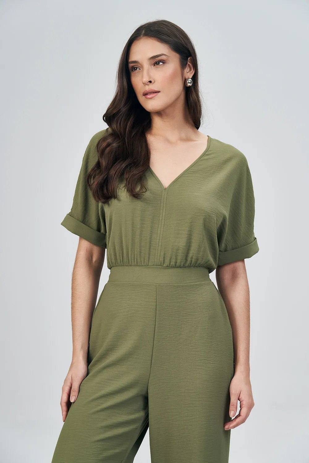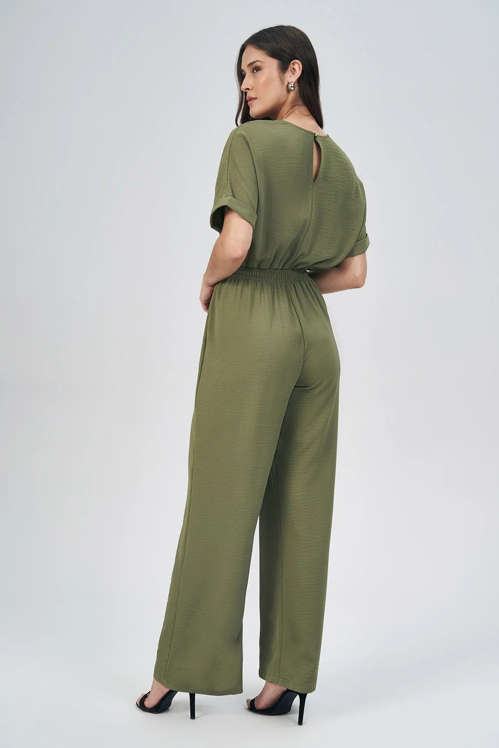 MACACÃO DECOTE V ACINTURADO FEMININO ACOSTAMENTO
