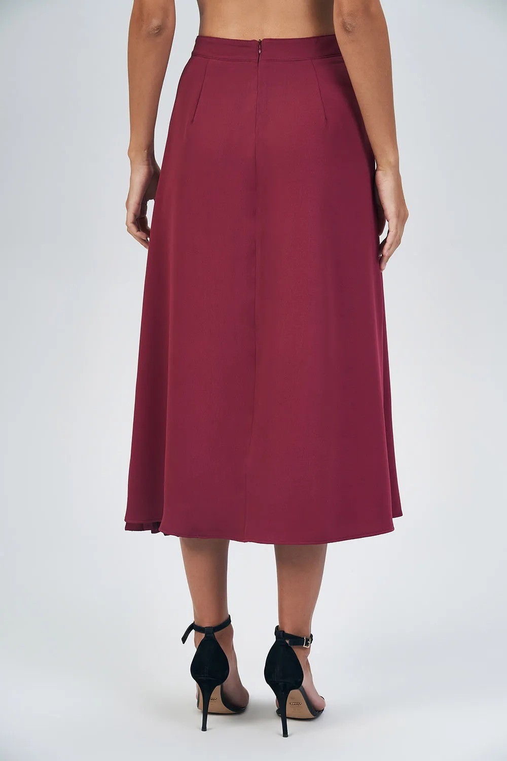 Saia midi confeccionada em tecido de toque macio e caimento fluido, ideal para composições elegantes e modernas. Possui modelagem assimétrica, com recorte lateral em pregas que adiciona movimento e sofisticação ao visual. A cintura é média, com cós liso que valoriza a silhueta e garante conforto ao vestir.