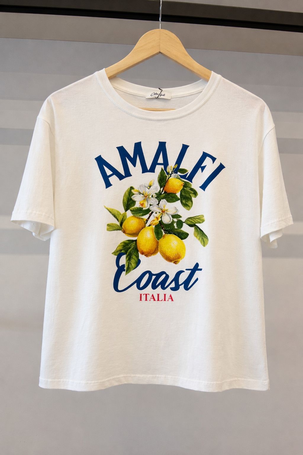 Inspirada no lifestyle mediterrâneo e no charme inconfundível da Costa Amalfitana, a T-shirt Amalfi Coast – Itália é sinônimo de leveza, frescor e elegância casual. A estampa frontal com limões vibrantes e folhagens delicadas remete às paisagens icônicas da Itália, enquanto a tipografia clássica traz um toque sofisticado e atemporal à peça.