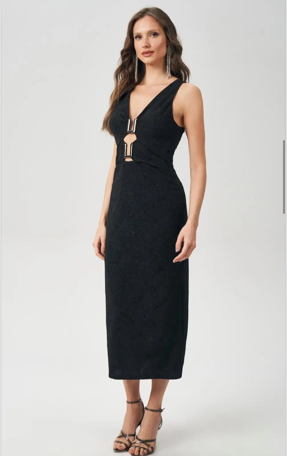 VESTIDO MIDI COM DETALHE FRONTAL ACOSTAMENTO